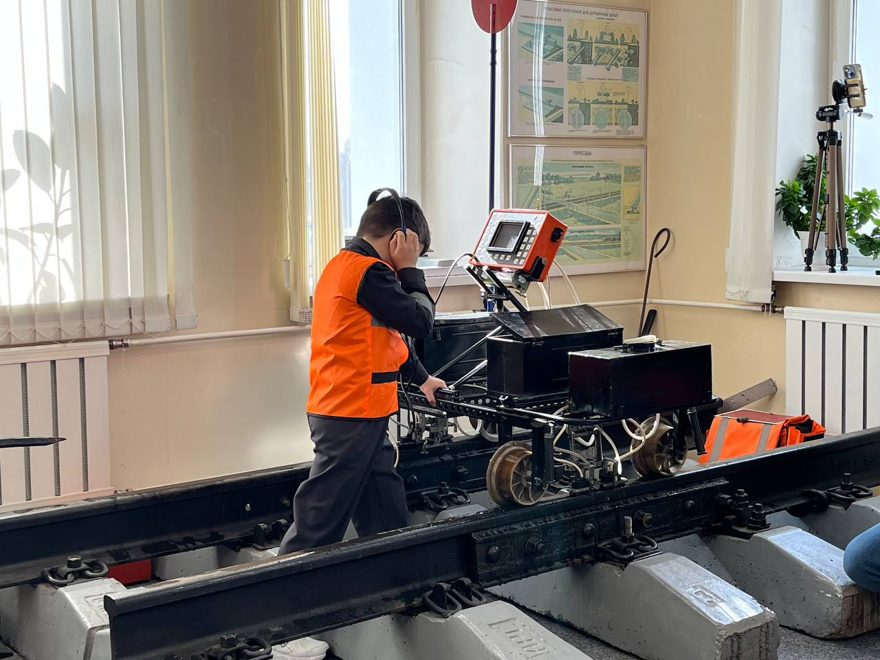 -Дефектоскопист железнодорожных путей: конкурсантам предстояло выявить дефекты на модели железнодорожного пути, используя современные методы диагностики дефектоскопной тележки.