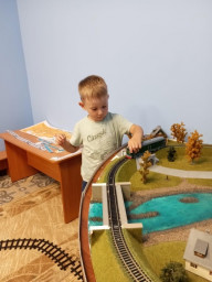 Сегодня в нашем детском саду прошёло развлечение, приуроченный ко Дню железнодорожника. Особое внимание мы уделяем этому дню, так как в семьях воспитанников детского сада профессия железнодорожника является традиционно преемственной.