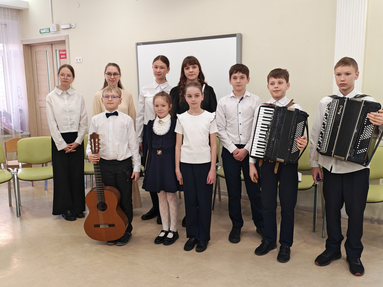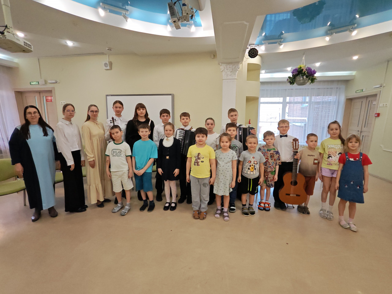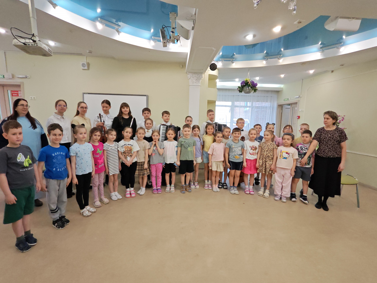 Этот день запомнится нашим ребятам надолго. Кто-то впервые в жизни увидел скрипку вживую и рассмотрел её изящную форму, кто-то заслушался переливами фортепиано, гитары, а кого-то заворожило звучание народных инструментов — баяна и аккордеона.