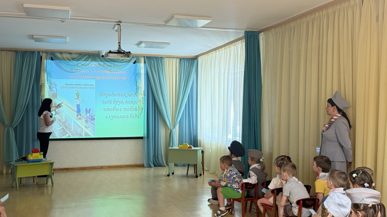 В нашем детском саду состоялась встреча с инспектором ГИБДД, лейтенантом полиции Егором Владимировичем Максимовым. Он познакомил детей со своей работой, профессией, рассказал про правила дорожного движения. Дети не только с интересом слушали. отвечали на вопросы, но и задавали их сами.